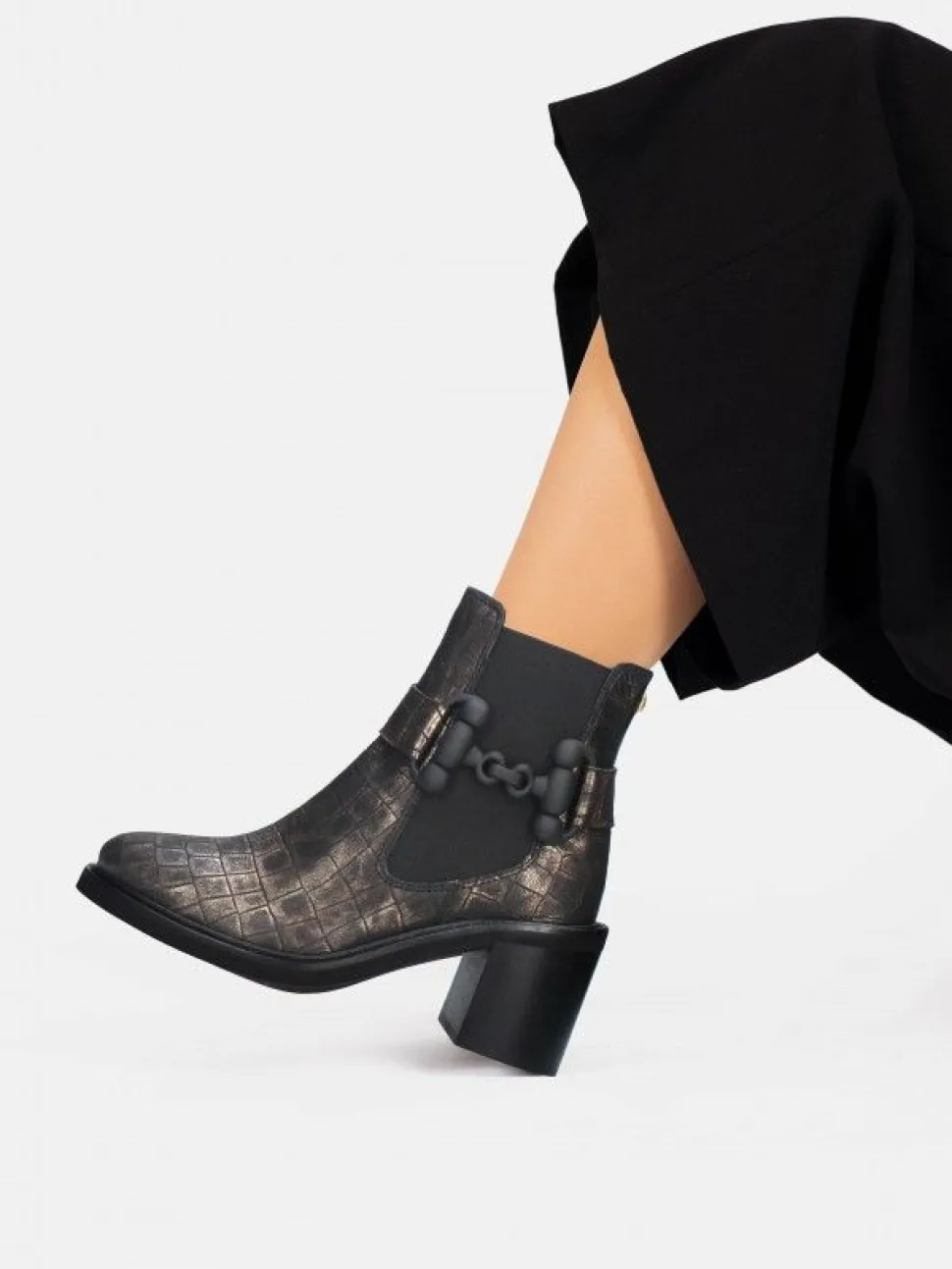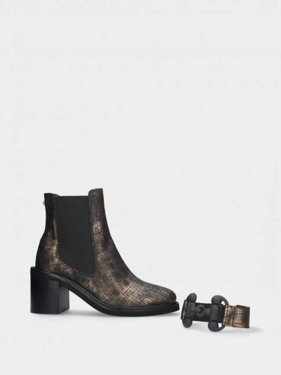 O Botim De Salto Alto Sandra01 Apresenta Uma Aplicação Amovível E Elástico Nas Laterais. A Sua Palmilha Almofadada Oferece Maior Conforto De Marcha.