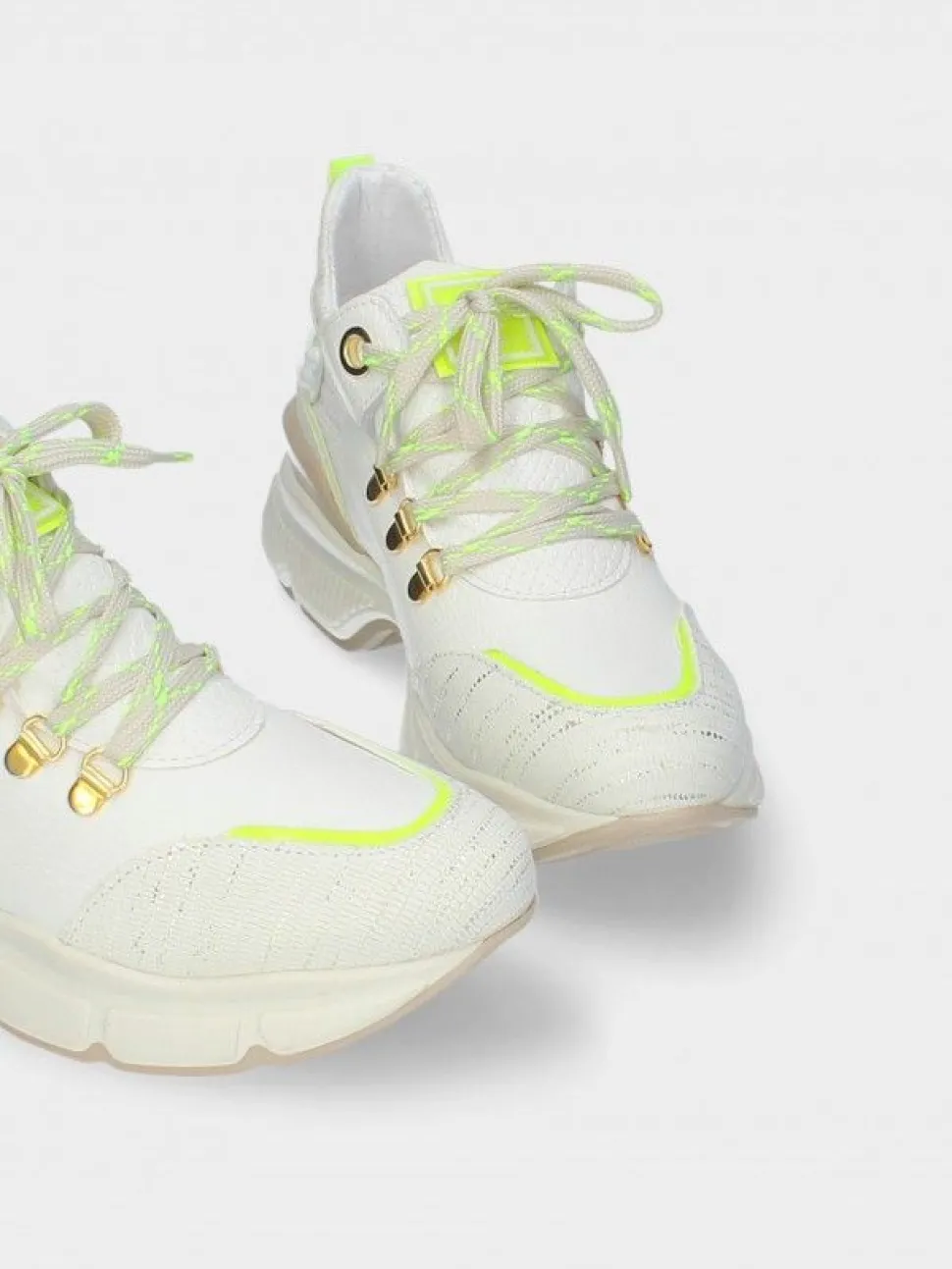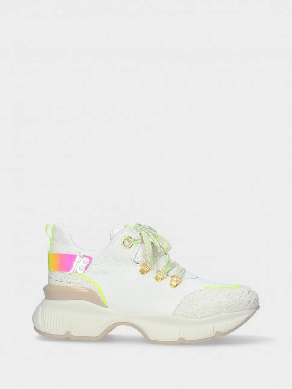 Em Tons Brancos E Com Pormenores Fluorescentes, A Sapatilha Andreia16 É Essencial Para Completar Looks Arrojados Que Procuram Acompanhar As Tendências De Moda. Calçado Português